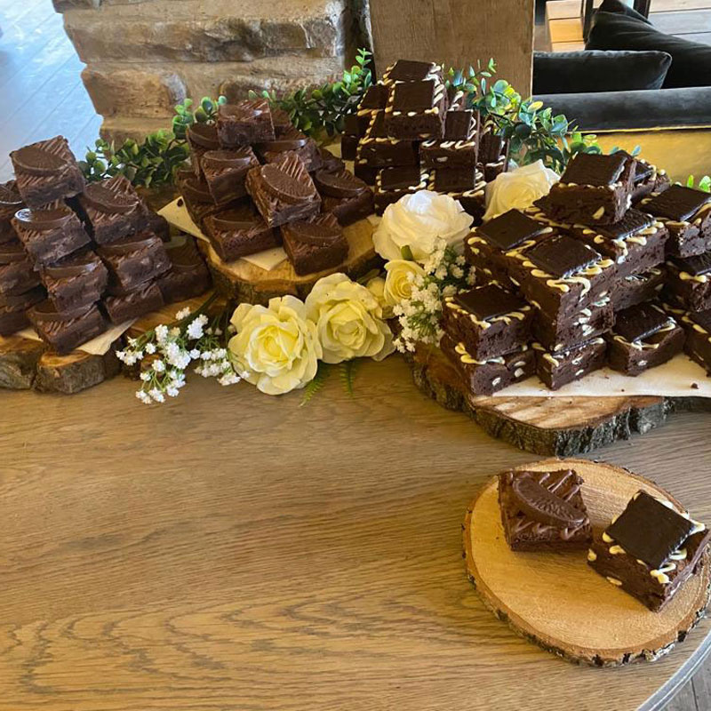 Brownie stacks are a wonderful alternative to a traditional wedding cake. We always ask the bride and groom to choose flavours that are personal to their story, have you got a favourite chocolate bar? Is there a special memory you share that we can incorporate?