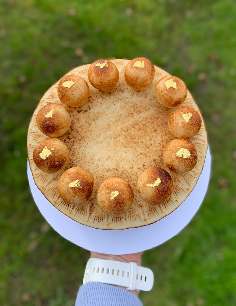 Crafting a luxury handmade Simnel cake is a labour of love, requiring skill, patience, and attention to detail. Each cake is meticulously prepared using the finest ingredients, from plump, juicy fruits to fragrant spices, all carefully folded into a sumptuous batter, then baked and matured soaking in flavours of maple syrup and a dash of rum. The marzipan is rolled out and draped over the cake like a blanket of snow, before being adorned with delicate marzipan decorations and caramelised with a blow torch to give that distinctive finish.